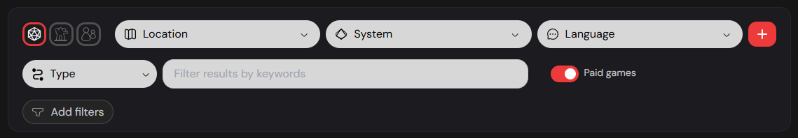 Not currently looking to join a paid game? Understandable - you can use the “Paid game” switch to filter out all the games run by professional GMs.